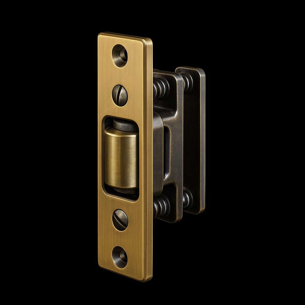 See finishes Actuation is simple, closing of the door causes the roller to fall in the depression of the strike, thereby holding the door closed.